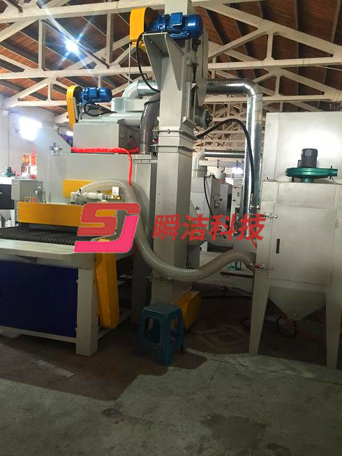2、操作時將工件放在輸送帶上、噴砂作業(yè)自動完成,十分簡單方更。