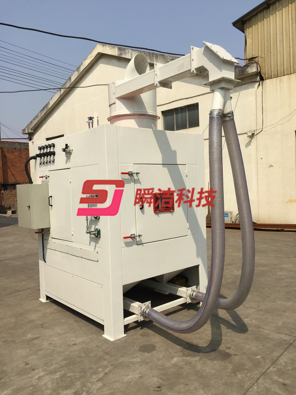 5、噴砂式及磨料回收管道均用聚氨酯板防護(hù),經(jīng)久耐用,更換方便快捷。