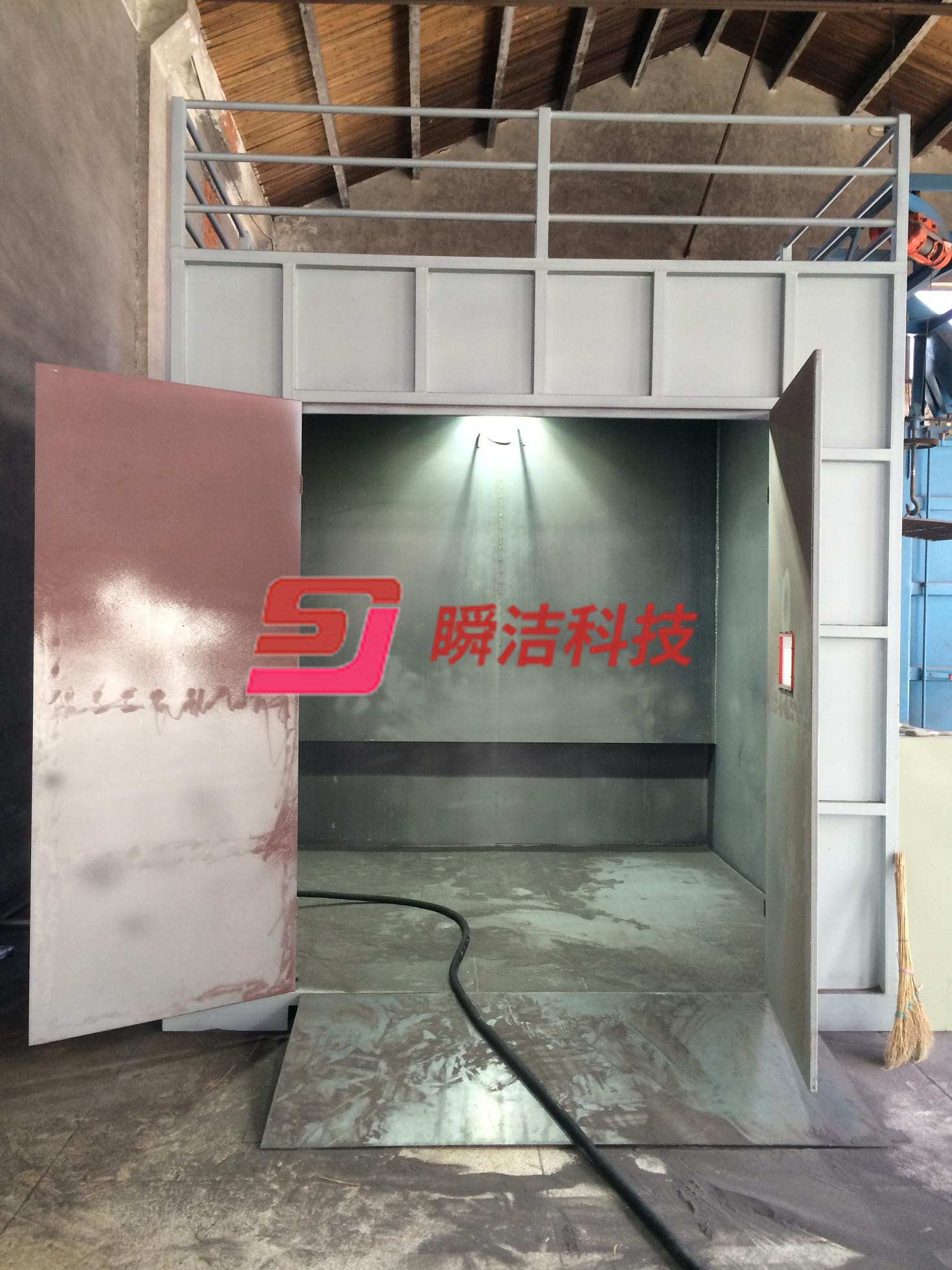 噴砂房又叫噴丸房、打砂房,適應于一些大型工件表面清理、除銹,增加工件與涂層之間的附著力等效果 噴砂房根據磨料的回收方式噴丸房分為:機械回收式噴丸房和人工回收式噴丸房. 其中人工回收噴砂房由于經濟實用,制作簡單、方便,用材簡易,大大的減少了噴砂房的造價成本,也被很多客戶特別是中小企業所接受。